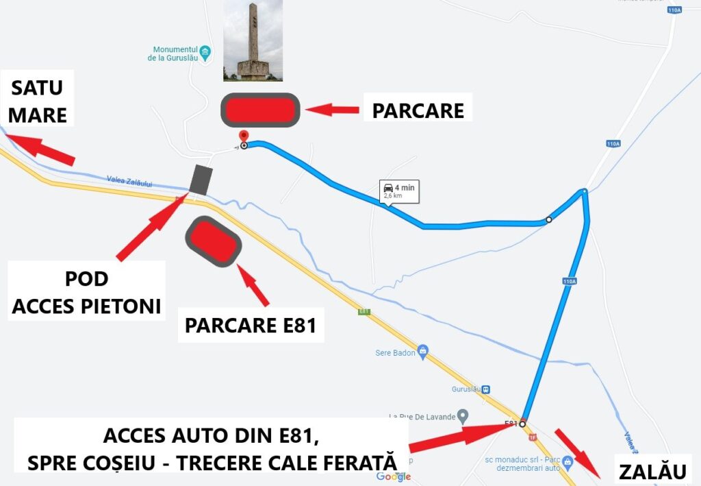Accesul participanților se face de pe E81 (Zalău – Satu Mare), de la intersecția Drumului European cu Drumul Județean 110A, spre Coșeiu (Guruslău).