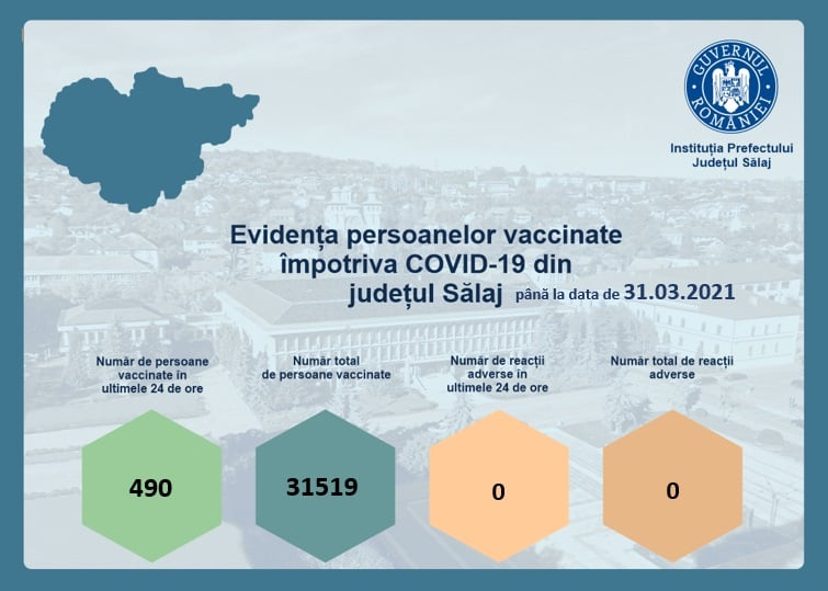 Conform datelor centralizate miercuri, 31 martie, situația epidemiologică la nivelul județului Sălaj se prezintă astfel: 9688 persoane infectate cu SARS-CoV-2...