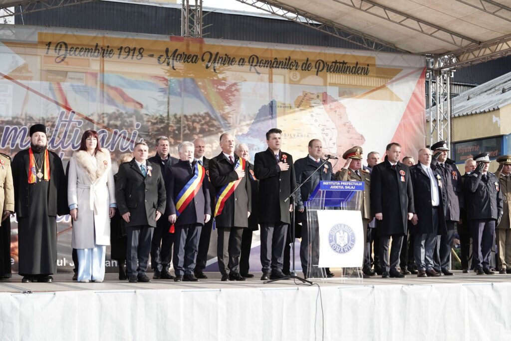 ”Naţiunea română, din ţară sau de peste hotare, sărbătoreşte, în prima zi a lunii decembrie, ideea de unitate pentru care au luptat înaintaşii noştri, alături de bucuria şi mândria de a fi, astăzi, la mai bine de un secol de la momentul 1918, o ţară membră a Uniunii Europene şi NATO, un stat naţional, suveran şi independent, unitar şi indivizibil. La ceas aniversar, nu trebuie să uităm să ne îndreptăm gândurile, cu respect şi recunoştinţă, către toţi cei care au făcut posibilă România de astăzi, prin muncă, prin luptă şi chiar prin sacrificiul suprem, atunci când a fost nevoie. Ultimii ani au fost şi sunt în continuare dificili, nu doar pentru ţara noastră, ci pentru întreg mapamondul, cu o boli, război şi crize energetice. Sunt momente în care trebuie să ne reamintim, mai mult ca niciodată, că doar uniţi – autorităţi locale, guvernamentale, cetăţeni, putem trece cu bine peste aceste provocări. Dar înainte de toate, înainte de probleme şi provocări, 1 Decembrie este despre mândria de a fi român, despre patria sufletelor noastre, despre emoţia unui cuvânt simplu: <acasă”>. La mulţi ani, tuturor sălăjenilor. La mulţi ani, România!”, a subliniat, în discursul său, Dari Toma, prefectul judeţului Sălaj.