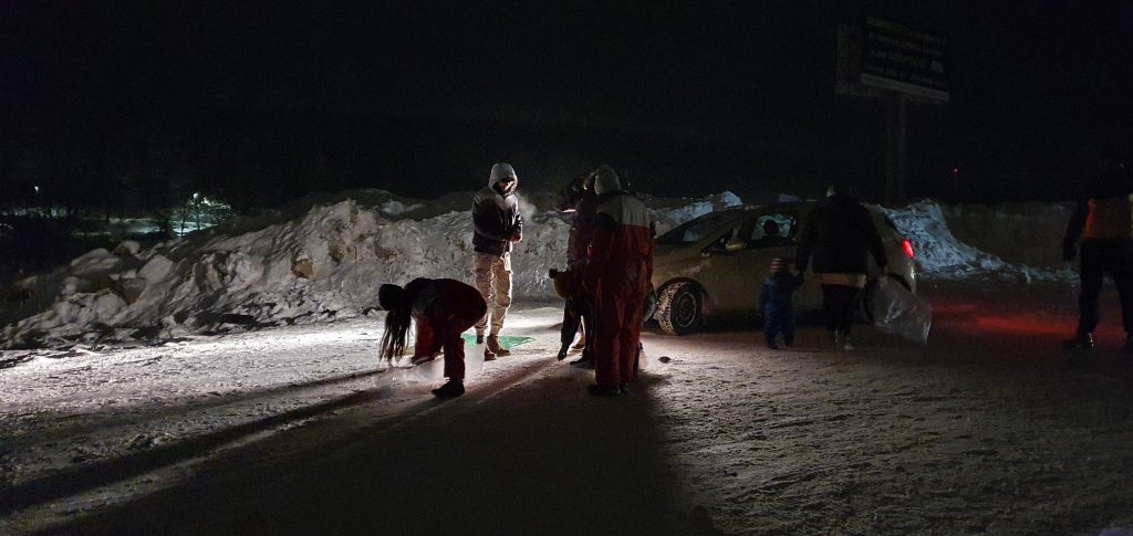 Dată fiind ziua scurtă în această perioadă a anului, nu puţini au fost cei care au găsit o soluţie şi pentru această problemă, continuând distracţia la săniuş sau la „pungă” şi după lăsarea întunericului, la farurile maşinilor.
