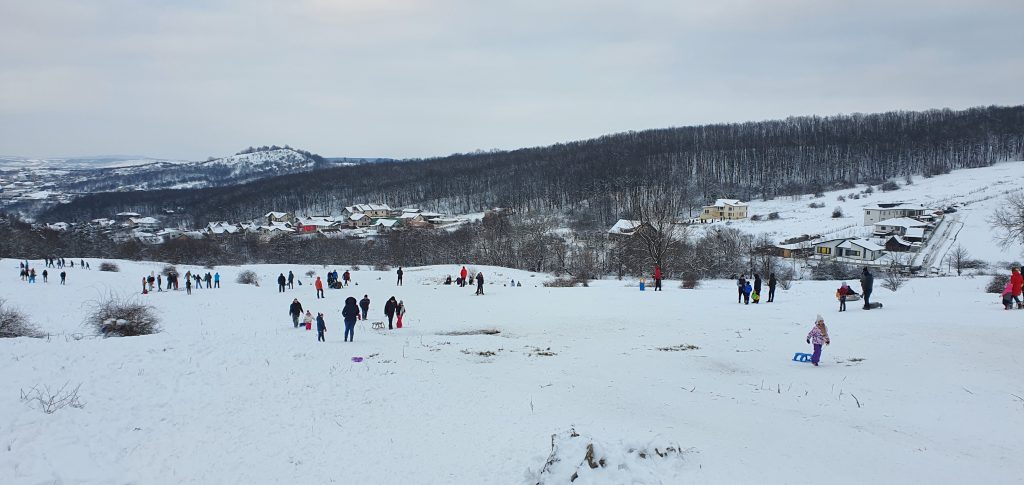 Într-un oraș în care posibilitățile de petrecere a timpului liber se limitează la un mini-patinoar și, eventual, plimbări în aer liber, zăpada căzută în ultimele zile a fost o adevărată mană cerească pentru cei care și-au dorit o distracție de sezon.