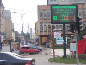 Pentru prima data in cei aproape doi ani de zile scursi de la punerea ei in functiune, statia automata de monitorizare a calitatii aerului din Zalau a afisat joia trecuta depasiri la indicatorii de calitate. Este vorba despre indicatorul pulberi in suspensie cu diamentrul mai mic de 10 microni, a carui depasire a dus joi la incadrarea aerului din Zalau in nivelul 5 de calitate, pe o scara formata din sase nivele: 1:excelent, 2:foarte bun, 3:bun, 4:mediu, 5:rau si 6:foarte rau. Starea calitatii aerului este redata pe panoul de afisaj din centrul municipiului (amplasat pe platoul din fata Prefecturii, vizavi de ceas), printr-un sistem de culori, diferite nuante de verde reprezentand aerul de calitate buna, o calitate proasta a aerului fiind reprezentata cu culorile galben (pentru 4:mediu), portocaliu (5:rau) si rosu (6:foarte rau). De altfel, in nici o zi din saptamana trecuta panoul nu s-a „inverzit”, cea mai buna calitate afisata in aceasta perioada fiind medie (culoarea galbena).