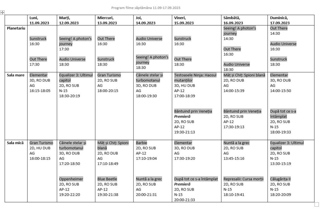 Totodată, la solicitarea unităților de învățământ, în limita locurilor disponibile și în baza unei programări, reprezentanții cinematografului organizează matinee. Prețul unui bilet la matineu pentru elevi, studenți sau preșcolari este de 5 lei.