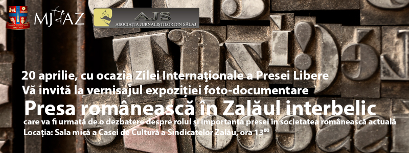 Vernisajul expoziției foto-documentare ”Presa românească din Zalăul interbelic” va fi urmat de o dezbatere privind rolul și importanța presei actuale în societatea românească, realizată în colaborare cu Asociația Jurnaliștilor din Sălaj, pentru a marca Ziua Internațională a Presei Libere.
