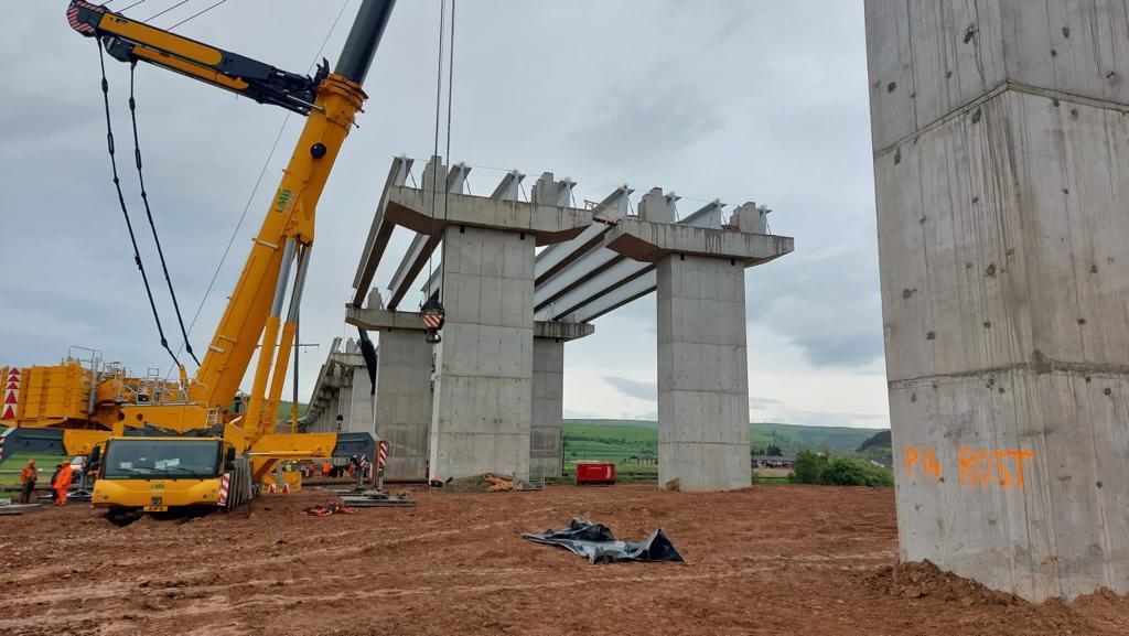 De la Nădășelu la Mihăiești, se lucrează la structuri (montare grinzi la structura 1, betonare cuzineți la structura 4, cofrare rigolă la structura 5, armare placă suprabetonare la structurile 7 și 8) și la terasamente (umplutură pământ, strat inferior fundație).