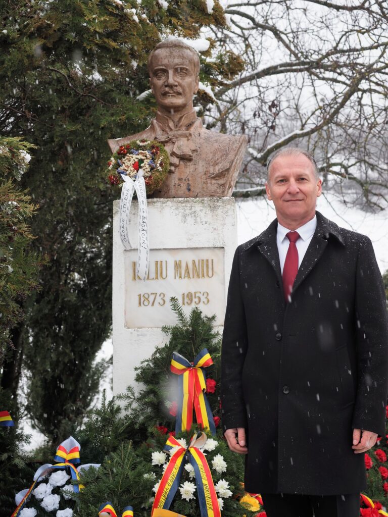 La sfârșitul ceremoniei s-au depus coroane, jerbe și flori la statuia marelui om politic, aflată în vecinătatea Catedralei (Strada Baba Novac 36).