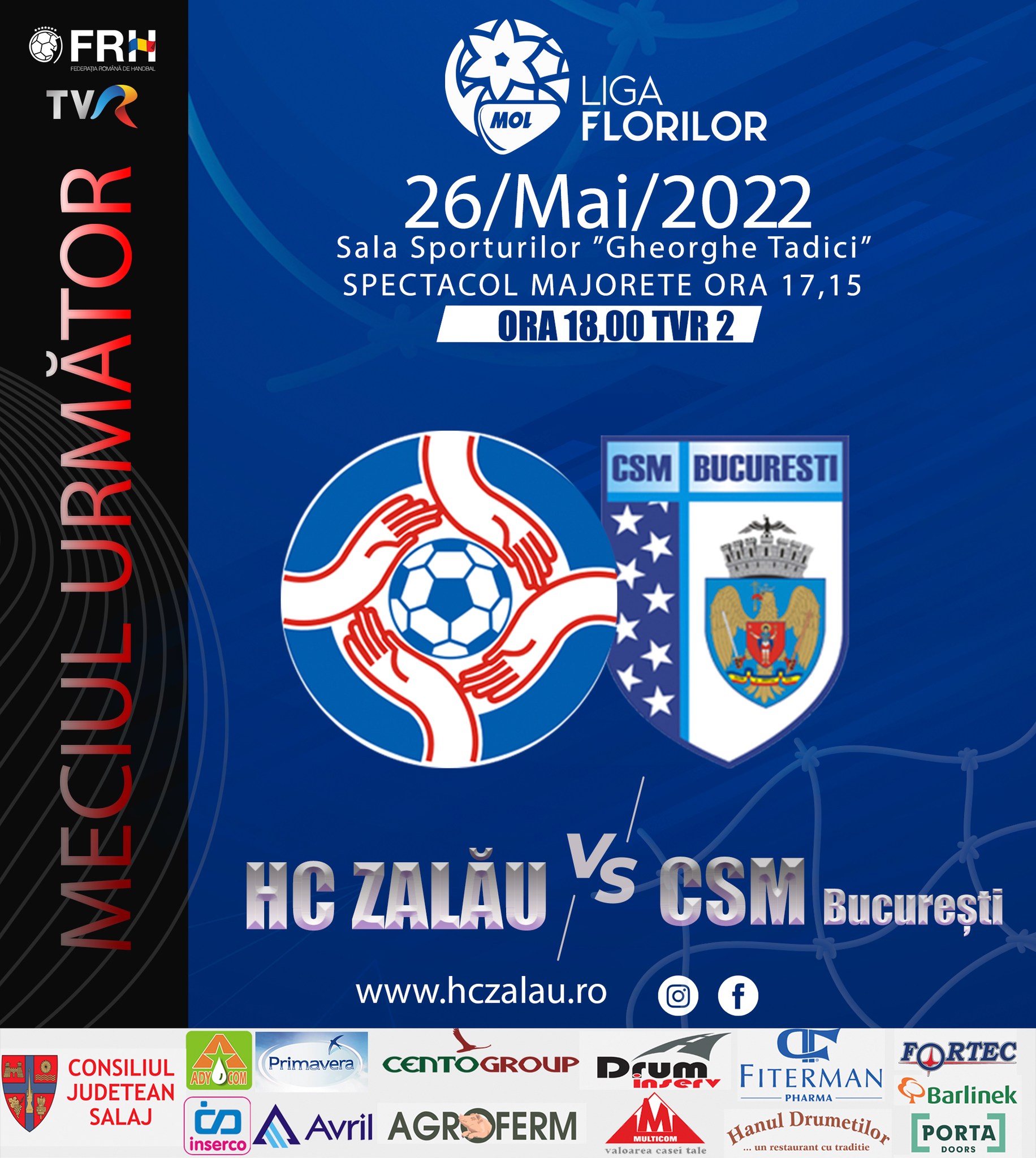 Iubitorii handbalului și ai sportului, în general, sunt invitați joi, 26 mai, la Sala Sporturilor ”Gheorghe Tadici” din Zalău, unde se va disputa etapa a 25-a a Ligii Florilor MOL.