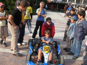 Copii de toate varstele au dat navala ieri pe platoul din fata Prefecturii pentru a asista sau chiar a participa la demonstratiile practice si la spectacolul artistic oferit de Palatul Copiilor Zalau, cu ocazia deschiderii, la 1 octombrie, a unui nou an scolar. Cea mai mare priza la pustime au avut-o karturile, puse la dispozitia celor interesati sa faca o… tura de platou. Si n-au fost putini cei care au incercat, pret de cateva minute, sa intre in pielea lui Schumacher. Si navomodelele si aeromodelele au captat atentia spectatorilor curiosi, incantati de indema-narea cu care viitorii ingineri – copiii de la cercul de navomodelism al palatului – construiesc si stapanesc complicatele masinarii.