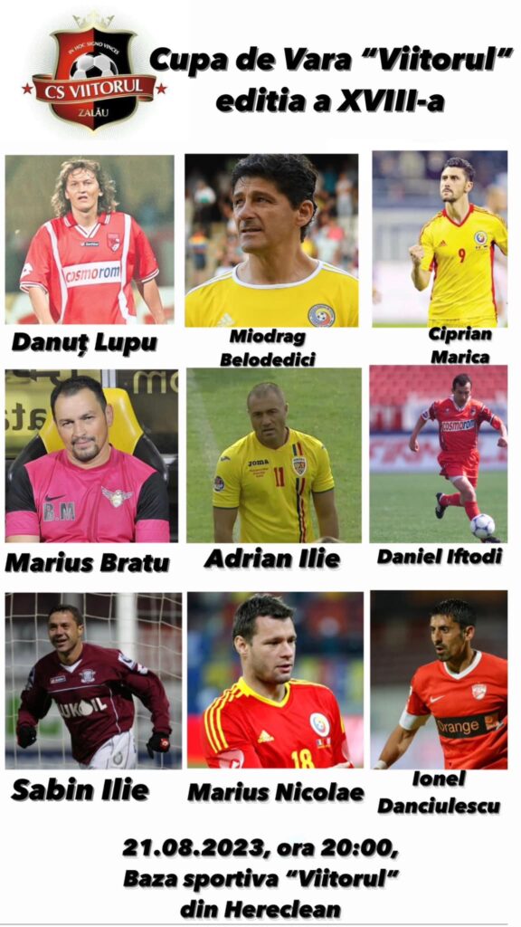Aceștia vor intra pe teren la meciul oficial de deschidere al Cupei de Vara “Viitorul” editia a XVIII-a. Partida se va disputa între fostele glorii ale fotbalului românesc, de o parte, și parlamentari, oficialități și oameni de afaceri sălăjeni, în echipa adversă.