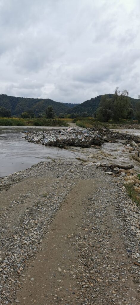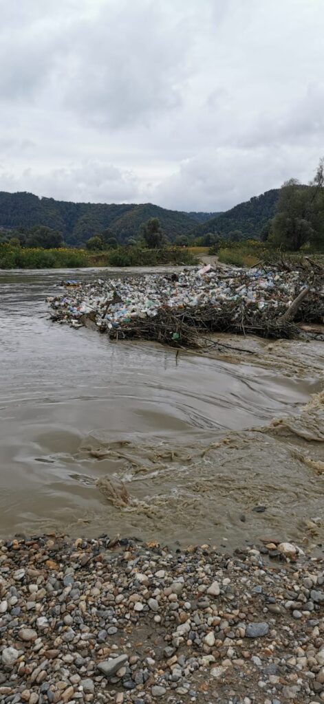 Ploile abundente din ultima perioadă au adus pe Someș tone de deșeuri. Mare parte din ele s-au oprit la podul din tuburi de la Băbeni.