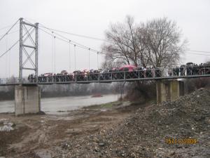 Tot duminica, dupa taierea panglicii inaugurale, s-a facut si o testare a rezistentei podului, greutatea maxima admisa fiind de maximum 3,5 tone.