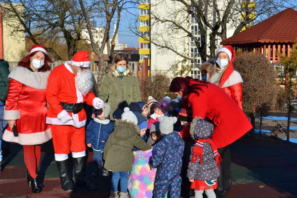 Beteală, ghirlande, clopoței, brad împodobit, chiar și un șemineu necesar ca Moș Crăciun și ajutoarele sale să se încălzească, costume specifice, multă multă veselie, inocență, cântece, colinde și poezii – au fost rețeta perfectă pentru sărbătoarea din curtea grădiniței.