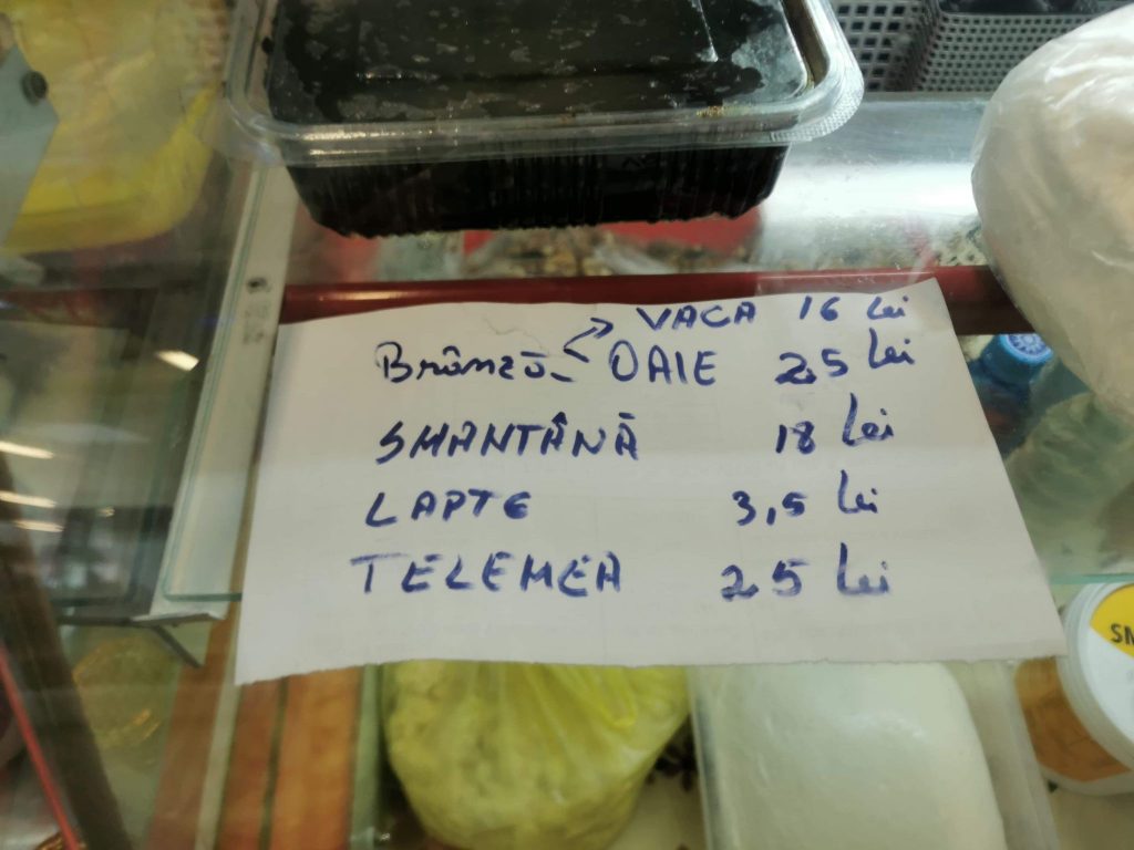 În prezent, în hală un kilogram de brânză (vacă, oaie) se vinde cu prețuri cuprinse între 16-25 lei, smântâna este la 18 lei litrul, laptele se vinde cu 3,5-4 lei, iar telemeaua costă 25 lei /kg. Produse ar fi pe toate gusturile, numai bani să fie și voință însoțită de dorința de a mânca sănătos, de la țăranii noștri.