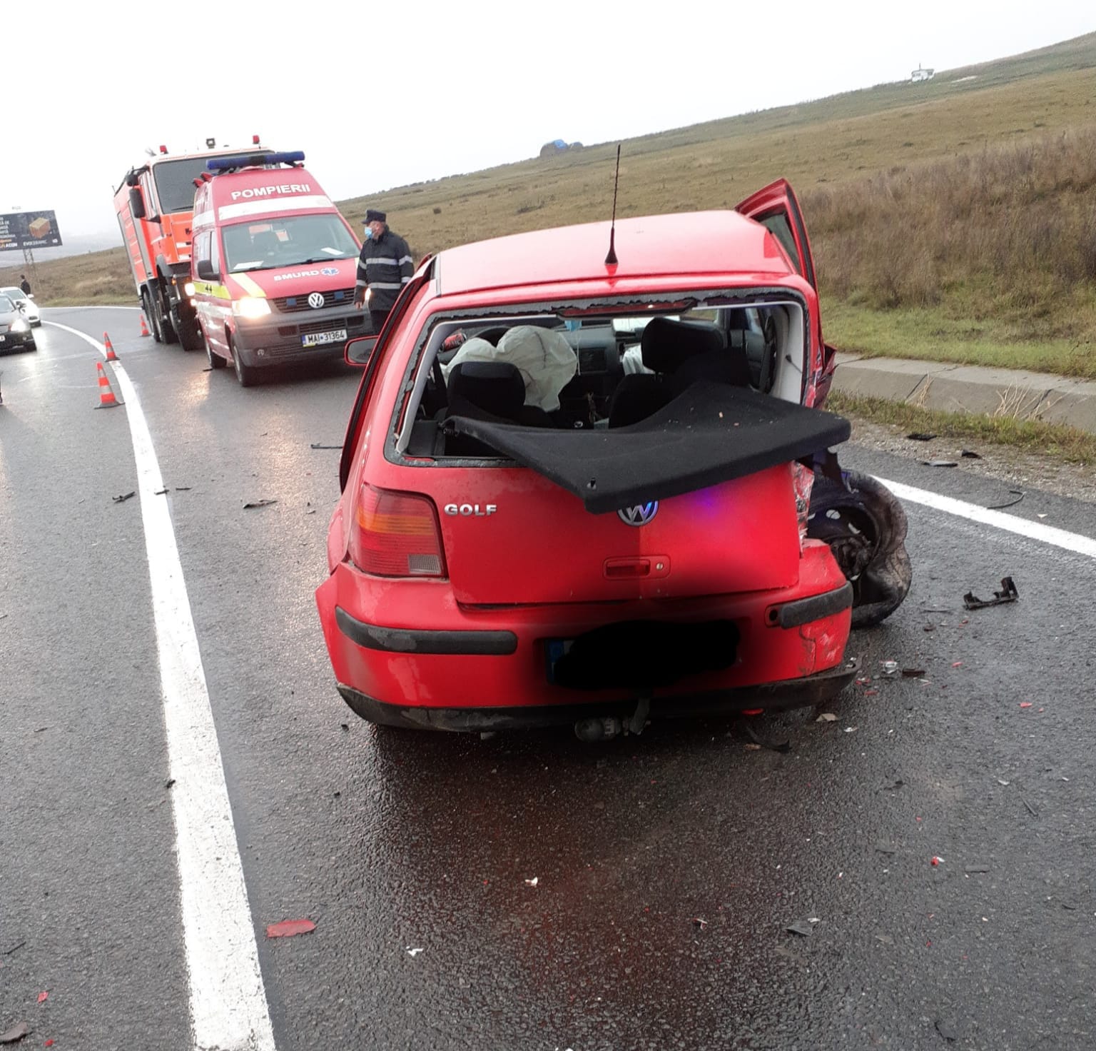 Cauza accidentului a fost neadaptarea vitezei la condițiile de drum – vreme ploioasă și șosea umedă. Unul dintre șoferi a pierdut controlul volanului, a intrat pe contrasens și a acroșat două autoturisme care circulau regulamentar, din sens opus.