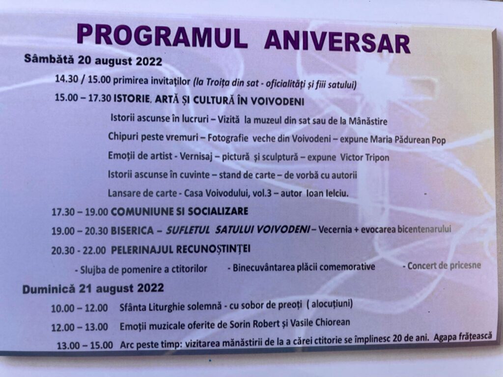 Într-un ecou al timpului și al veșniciei, aici, pe dealul cu brazi situat în mijlocul satului Voivodeni, unde lemnul a zidit o casă pentru spirit, și unde timpul și-a oprit curgerea într-o rugă desăvârșită, clopotul străbun a sunat a chemare la ZI DE MARE PRAZNIC.