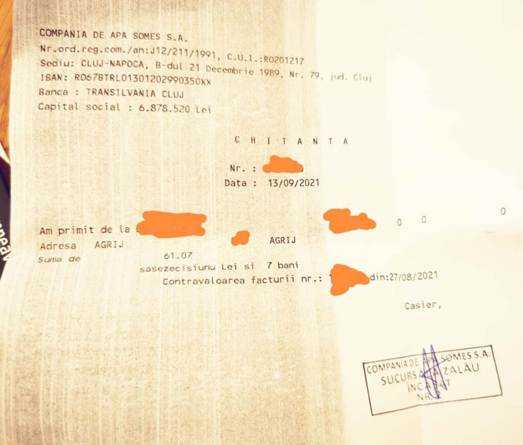 Vă amintim că, la începutul lunii august, primarul comunei Agrij declara pentru Graiul Sălajului că în maxim o lună își va face efectul hotărârea de Consiliu Local prin care a readus în administrarea Primăriei Agrij rețeaua de apă și canalizare. Cum era firesc, am vrut și noi să aflăm dacă acum, la mijlocul lunii septembrie, după o lună și jumătate de la aprobarea HCL, rețelele din comună sunt administrate de Primărie. Am aflat și răspunsul de la oameni: Compania de Apă Someș – Sucursala Zalău facturează în continuare apa și canalizarea consumatorilor din Agrij și am primit drept dovadă o chitanță de achitare a unei facturi emisă la finele lunii august.