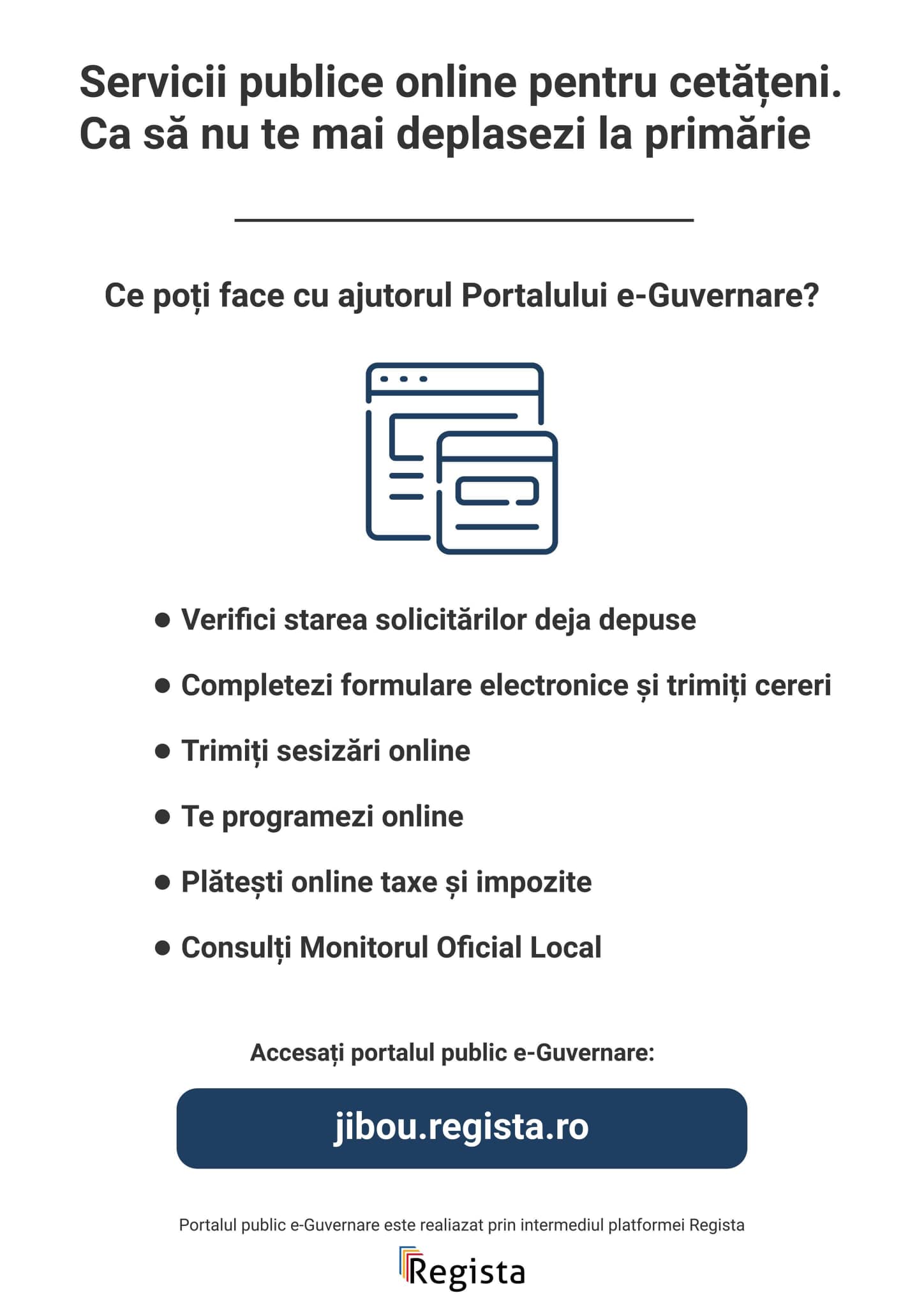 Primăria Jibou intră în rând cu normalitatea și anunță că cetățenii vor avea acces la o serie de servicii online, fără a mai fi nevoiți să stea la rând, la ghișee, pentru orice hârtie. Potrivit primarului Dan Ghiurco, aplicația Regista le permite cetățenilor să depună cereri online pentru diverse solicitări, să facă sesizări pe harta digitală a orașului Jibou, să se programeze online pentru audiențe și alte servicii, dar și să verifice stadiul solicitărilor depuse, să plătească impozitele și taxele locale, să consulte documente de interes public.