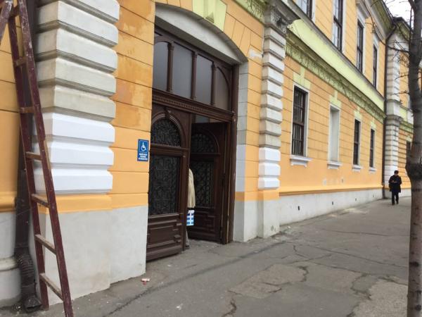 Primaria Zalau e proaspat vopsita, dar numai pana la inaltimea la care a ajuns mesterul cu pensula