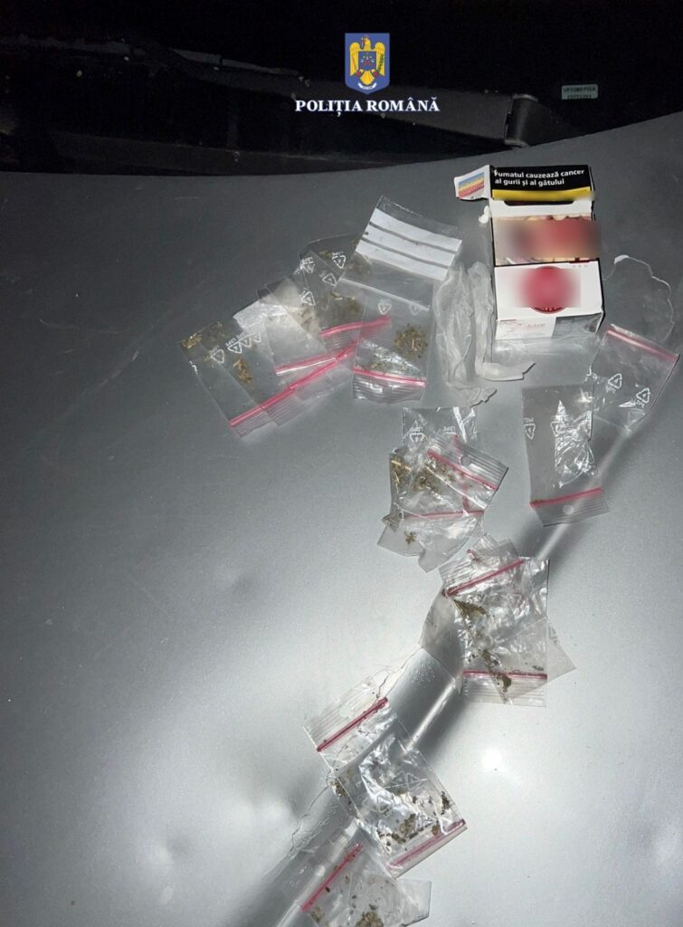 De asemenea, polițiștii le-au efectuat controale corporale atât conducătorului auto, cât și pasagerilor, iar asupra acestora au fost descoperite 21 de plicuri cu substanță vegetală, de culoare verde-olive și substanță solidă albă sub forma unor cristale, precum și două țigarete confecționate din substanță vegetală de culoare verde-olive cu miros înțepător.