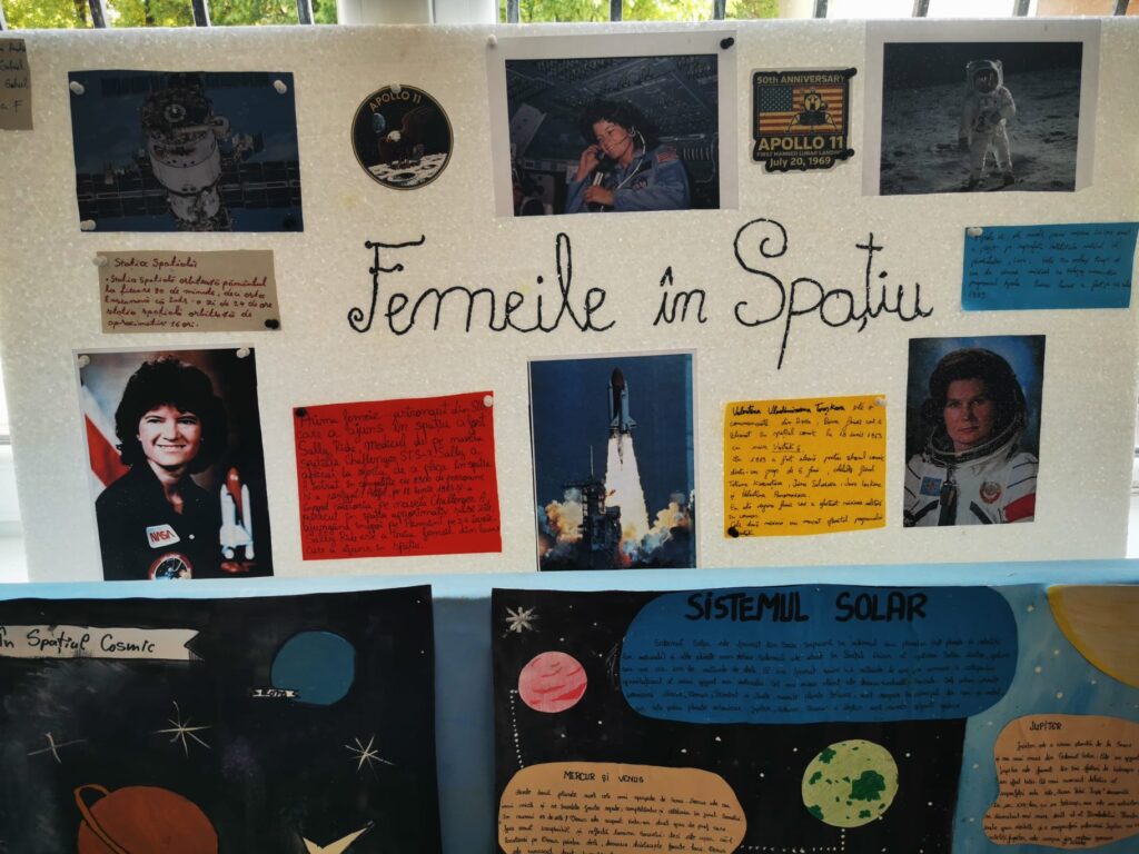 ”Ne-am implicat în proiectele prin care marcăm Săptămâna Mondială a Spațiului Cosmic deoarece suntem fascinate de ceea ce se întâmplă în Univers, de planete, de stele și am privit această activitate ca o modalitate de socializare între noi. Această pandemie ne-a ținut departe unii de alții dar, lucrând la proiect, la machete, am avut oportunitatea să învățăm mai mult despre cosmos, să comunicăm, să colaborăm. Am încercat să feminizăm proiectele pe care le-am expus pentru a fi în trend-ul temei mondiale <Femeile în spațiu> – am adăugat câte un obiect feminin planetelor – o oglindă planetei Venus pentru că este asociată cu Zeița Frumuseții, un inel planetei Saturn pentru că inelele planetei simbolizează infinitatea etc. Această activitate a fost foarte atractivă și putem aduce prin proiectele noastre un oamgiu oamenilor care au ajuns în spațiu și un plus valoare școlilor pe care le reprezentăm”, ne-au declarat elevele Ana și Alexandra.
