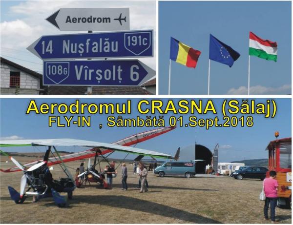 „Voua, pilotilor dornici de turism aerian, va facem o propunere: o zi de zbor româno-maghiara, o portie generoasa de bab-gulyas autentic unguresc si o palinca de cea mai buna calitate va ofera Aerodromul Crasna (Zalau – Salaj), în data de sâmbata 1 septembrie 2018. Apoi, povesti depanate pâna seara târziu, spuse în româneste si traduse în ungureste sau vice-versa”, este mesajul organizatorilor show-ului aviatic care va fi organizat la Crasna.În ultimii ani, nu poti sa fii la Zilele Crasnei fara a vedea aerodromul sau sa faci „o tura panoramica de la înaltime”. Situat în partea de vest a comunei, la 200 de metri de ultimele case, pista aerodromului este marcata prin drapelele României, Ungariei si Uniunii Europene. Aici, functioneaza Clubul Aviatic Deltafly (http://www.deltafly.ro/) al cunoscutului Vizaknai Alexandru. Este unul dintre cei doi detinatori de avioane sau motodeltaplane din judetul Salaj, alaturi de Muresan Sorin, din Zalau.Pista aerodromului Crasna este destul de scurta, de 300 de metri dar suficienta pentru decolarea si aterizarea aeronavelor usoare si a motodeltaplanelor. Exista si un hangar care poate adaposti doua aeronave ultrausoare sau doua motodeltaplane.„Aerodromul a fost deschis în anul 2005, dupa ce Primaria Crasna mi-a concesionat 1,3 hectare din pasunea comunala. Zborurile se fac cu un motodeltaplan, pe care l-am achizitionat din Ungaria”, explica Alexandru Vizaknai, proprietarul aerodromului. Potrivit celor declarate de Vizaknai, „nu cerem bani pentru serviciile pe care le oferim. Clientii vor trebui sa plateasca doar benzina, uleiul si uzura aparatului. Pentru o ora de zbor cheltuielile ajung la aproximativ 100 de euro”, spune proprietarul aerodromului. Înca de la vârsta de trei ani, Alexandru Vizaknai a visat sa zboare si si-a dorit atât de mult acest lucru încât, în copilarie, era sa-si rupa picioarele încercând „sa zboare” cu umbrela din podul casei. La 17 ani a avut parte de primele experiente „în aer”. „Era prin 1981, iar în acele vremuri se facea premilitarie. Am avut astfel ocazia sa particip la un curs de parasutism la Cluj. În primul an, am facut exercitiile de pe un turn, iar în al doilea an am avut parte de primul zbor adevarat, cu un avion Antonov”. Dupa câtiva ani si-a permis sa îsi cumpere propriul aparat de zbor. „Am dat aproximativ 8000 de euro pe un motodeltaplan, cumparat din Eger (Ungaria). Înainte am facut cursuri de zbor cu Vince Felinc, multiplu campion mondial în competitiile de zbor cu acest tip de aparate”, mai spune Alexandru Vizaknai. Pasiunea pentru zbor a fost înteleasa si de fostul primar al comunei Crasna, Emeric Pop, de altfel satul natal al pilotului. În 2005, Primaria i-a concesionat 1,3 hectare din pasunea comunala, iar aici a amenajat un aerodrom. „Investitia nu a fost mare deloc. Practic, a trebuit doar sa netezesc suprafata si sa pun iarba. Hangarul, unde tin deltaplanul l-am facut din materiale demontabile, asa ca mi-e greu sa apreciez costul final. Odata cu construirea aerodromului, au început sa ma viziteze si colegi din alte zone ale tarii. Astfel, de Zilele Crasnei vin, cu propriile aparate, si turisti din Bacau, Constanta sau Sfântu Gheorghe”, mai afirma Vizaknai.