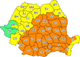 Mai multe județe sunt, tot până în cursul zilei de joi, inclusiv, sub atenționare cod portocaliu de vreme rea.