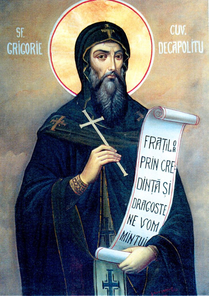 Grigorie s-a născut în orașul Irinopolis din Decapolea Isauriei, în sud-estul Asiei Mici, în jurul anilor 780-790. El a petrecut 14 ani într-o mănăstire din Decapole, după care s-a retras într-o peșteră. În urma unei revelații divine, a părăsit peștera și a călătorit proclamând Evanghelia în Grecia, Macedonia și Imperiul Roman. În Roma a fost trimis la închisoare pentru câteva luni pentru că respingea cu vehemență erezia iconoclastă. Datorită harului primit de la Dumnezeu, în drumul sau apostolic a vindecat multe persoane care sufereau de felurite boli.