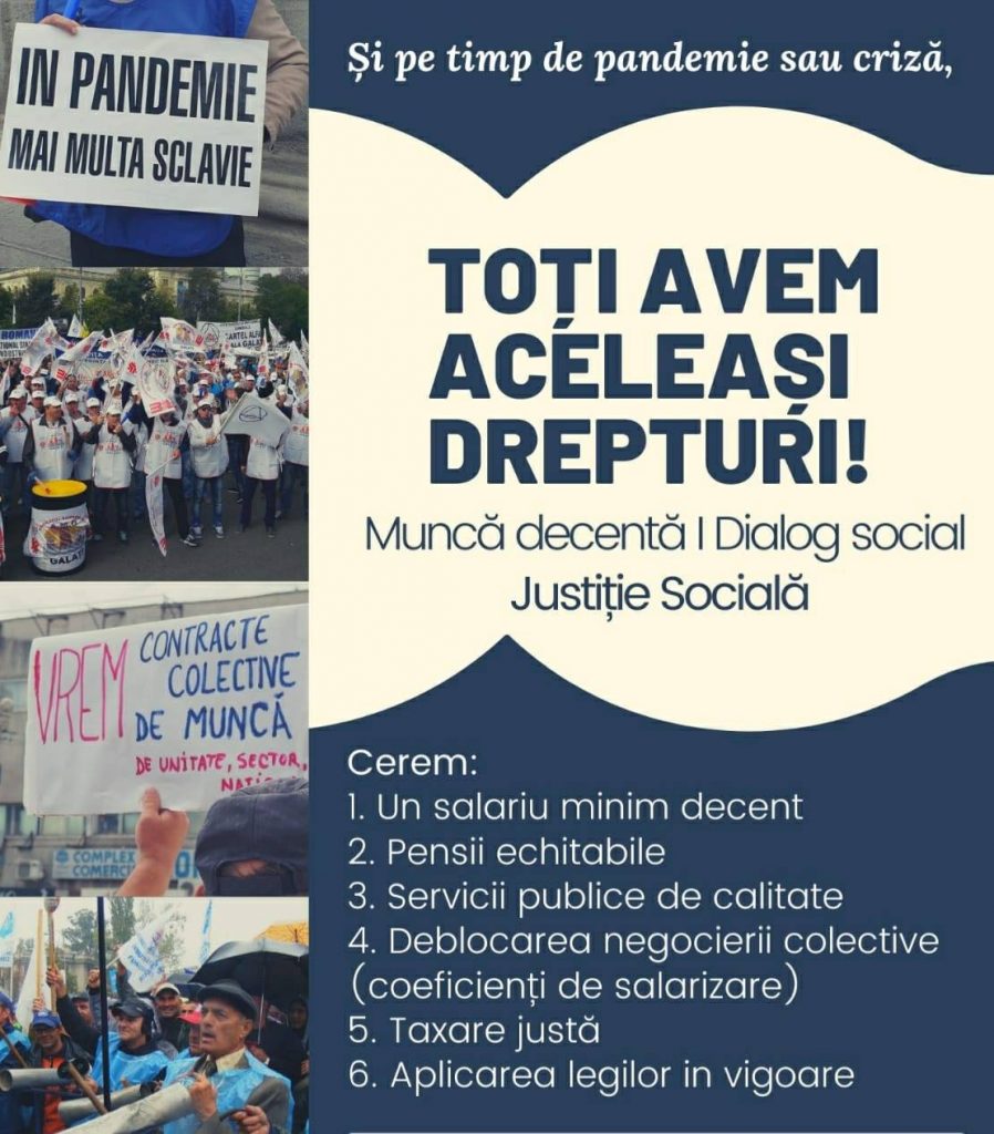 Aceștia contestă programul de guvernare, măsurile luate sau anunţate de actualul guvern, care dezavantajează, în opinia sindicaliştilor, profund şi preponderent categoriile de lucrători reprezentate de confederaţie, şi, mai larg, categoriile cele mai sărace ale cetăţenilor. Sindicaliștii solicită un salariu minim decent, pensii echitabile, servicii publice de calitate, deblocarea negocierii colective, taxare justă şi aplicarea corectă a legislaţiei.