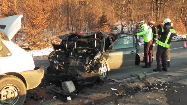 Un grav accident rutier, cu trei victime, dintre care una incarcerata, a avut loc azi in jurul orei 16.00, la urcare pe Meses, mai jos de fantana, pe DN1F. Mai exact a avut loc o coliziune frontala intre un autoturism marca Volkwagen Passat cu numarul de inmatriculare SJ 25 CSM, condus de Boticas Cornel din Zalau, care este ofiter de politie la Inspectoratul de Politie Judetean Salaj, iar in cealalt autoturism este o dubita marca Ford Transit de culoare alba cu numarul de inmatriculare HR 07 LJD, in care se afla soferul Pestean Mircea, de 50 de ani din Cluj, impreuna cu sotia lui, care statea in dreapta. Soferul clujean ne-a relatat ca a pornit din Zalau si se indrepta spre Cluj, unde firma are sediul. Dubita era goala. „Urcam Mesesul si inaintea mea am vazut Passat-ul, care se afla in spatele altei masini. Am vazut ca prima masina trece pe langa mine si brusc m-am trezit ca Passat-ul intra in mine. Asta a fost tot. Se poatea observa si dupa cum sunt pozitionate masinile acuma dupa impact.”, declara soferul clujean. In urma impactului, sotia soferului clujean si soferul zalauan au fost preluati de un SMURD, si o ambulanta si transportati la UPU Zalau. Soferul clujean a refuzat transportul la spital. La evenimentul rutier au intervenit doua autospeciale de la ISU Salaj, una cu apa si spuma si una pentru descarcerare. Au mai intervenit un echipaj SMURD si doua ambulante. La fata locului au mai fost prezente doua echipaje de la Politia Municipiului Zalau si doua echipaje de la Politia Locala Zalau.