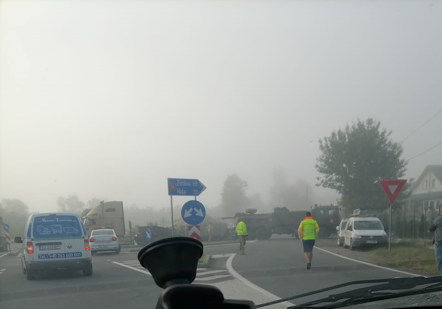 În această dimineață, o semiremorcă care transporta tehnică militară a ieșit în afara părții carosabile la intersecția Drumul Național 1G cu Drumul Național 1H, în apropierea podului de la Tihău. Traficul a fost restricționat și dirijat de polițiști încă de la ora 6.35, ora la care s-a înregistrat incidentul, până la repunerea semiremorcii pe partea carosabilă. Traficul rutier a fost oprit pe ambele sensuri mai bine de două ore.