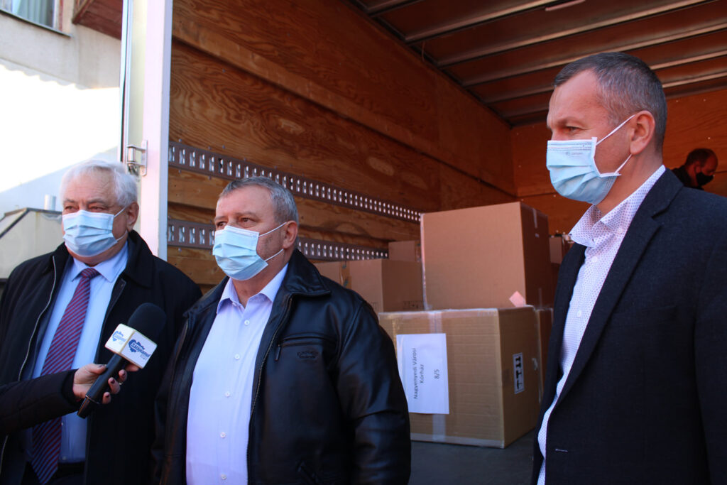 Lajos Mile, consulul general al Ungariei la Cluj, alături de reprezentanții UDMR Sălaj Seres Denes – deputat și președinte UDMR Sălaj, Sojka Atila – consilier județean și membru în Consiliul de Administrație al SJU Zalău, Nicolae Fazakas – viceprimarul Zalăului și Pop Emeric, directorul Pază Obiective și Intervenție, au fost cei care au predat lotul umanitar conducerii celei mai mari unități sanitare cu paturi din Sălaj.