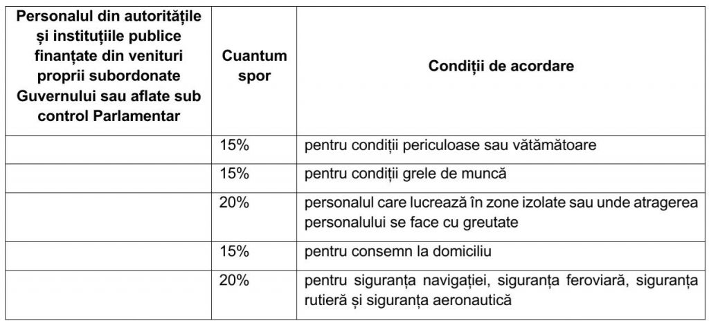 Angajații la stat primesc, printre multe altele, sporuri pentru munca pe ture, pentru condiții vătămătoare și periculoase, spor de suprasolicitare neuropsihică, spor de antenă, spor pentru păstrarea confidențialității.