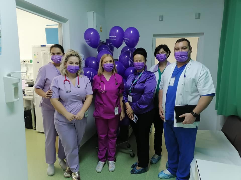 Și personalul Neonatologiei de la Zalău a sărbătorit în mov această zi, alăturându-li-se conducerea Spitalului Județean și colegii-parteneri ai mamelor și bebelușilor, personalul Secției Obstetrică-Ginecologie.